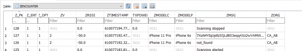 | ZMODELC | A device make and model. Can be the other device or our device. C is believed to refer to "Central". See this link for more on the OpenTrace github for Encounter Record. |